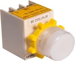 Name-'mimic' bicolour indicator lamp brand-mimic salient features:- 22.5 dia cutout. two colours indication in single body cost and space saving for control panel manufacturers bright diffused equal led glow. very easy to fit in front door. terminals suitable upto 2.5mm, sq. Wire.x 3 nos voltages available. 24v, 48v, 110v, 230v, ac & dc. any two colour combinations available between . Red,green,amber,blue,white distributors and dealers in unrepresented areas welcom