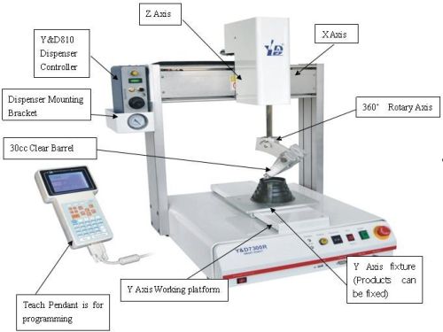 the product in the process of bonding, infusion, coating, sealing, filling, drop, linear/arc/round glue,etc. Dispense in point, line, surface, arc, circle and irregular curve and triaxial linkage function is available etc.