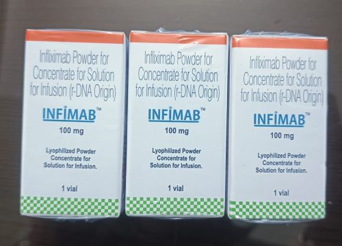Contact SupplierInfimab 100mg Injection is an antirheumatic medication that belongs to a class of drugs known as TNF (tumour necrosis factor) alfa inhibitors containing the active ingredient Infliximab. This medication is used to treat various inflammatory conditions, primarily autoimmune diseases like rheumatoid arthritis, Crohn's disease, ulcerative colitis, ankylosing spondylitis, psoriatic arthritis, and psoriasis.