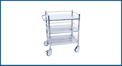 uperior quality and safe. Â Fully Stainless Steel 304. Â Three shelves, top shelf with open front and railings on three sides. Â Middle and lower shelf, railings on all four sides.