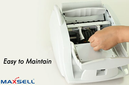 Maxsell MX50i is India’s Favourite Cash Counting Machine. Equipped with high precision sensors and advanced MG Spectrum Analyzing technology it helps in identifying counterfeit currency while counting and making it Impossible for MX50i to miss any Fakes. Identifies the latest 2000, 500 currency and needs no updation. Proven by our tests at India’s Leading Banks & RBI.