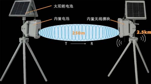 perimeter protection microwave barrier which consists of transmitter (t) and receiver (r)