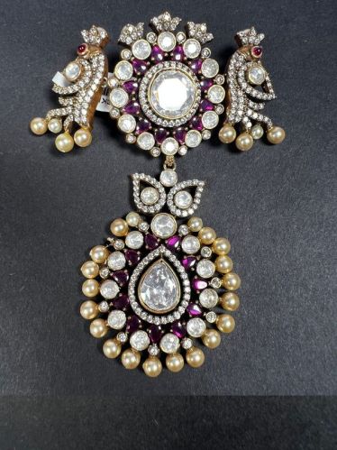 Contact SupplierThe Ishita silver CZ pendant, a timeless accessory crafted from 92.5 silver with gold-plating, that adds an element of sophistication to your attire. The pendant features beautiful pearls, ruby, moissanite, and cubic zirconia stones. Complete your look with grace and charm by adding this silver CZ pendant to your attire.