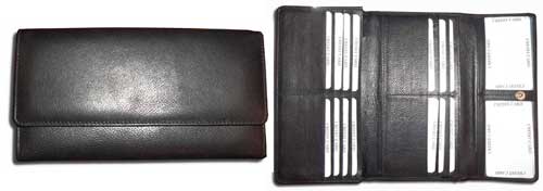 After opening the folds, this card holder size will be 20"x50"x1.5". It can be used as a card holder, as well as ladies wallet. Total 16 cards can be stored. Raw Materials Used Cow / Goat / Sheep Leather Details Size : 20" x 9" x 1.5"Color : Red, Black, Brown, Tan, Green, as per buyer's requirementMinimum order required : 50 PCS