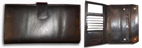 After opening the folds it's size will be 20"x35"x1.5". It is used as a Cheque Book Holder as well as card holder and ladies wallet with button pocket coin case. Total 6 cards can be stored. Raw Materials Used Cow / Goat / Sheep Leather Details Size : 20" x 9" x 1.5"Color : Red, Black, Brown, Tan, Green, as per buyer's requirementMinimum order required : 50 PCS