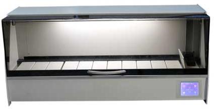 MTP-L-111: MEDIMEAS LINEAR TISSUE PROCESSOR WITH TOUCH SCREEN: This is the newly designed linear tissue processor with large blue LCD to program the timing sequence from 0-24 hrs. And 20 selectable programs and shaking time interval from 0-60secs. Supplied with 12 stations(9 reagents & 3 paraffin) with capacity of 1 litre.