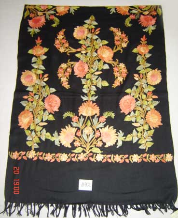 Ladies Black Floral Embroidered Woolen Shawl?