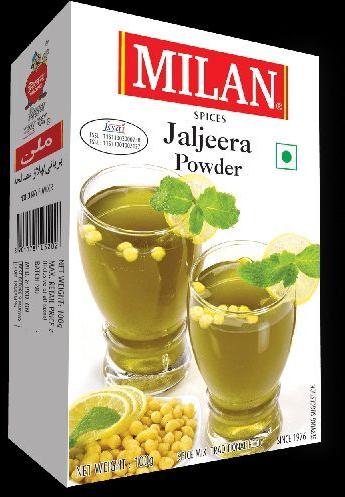 DESCRIPTION Jaljeera is a spicy – flavored – refreshing drink from Mathura. It is a delicious appetizer – cum – digestive. Prepare this refreshing drink with MILAN JALJEERA POWDER for a tangier taste.  INGREDIENTS: Common Salt, Black Salt, Dry Mango, Cumin, Black Pepper, White Pepper, Citric Acid, Dry Ginger, Mint Leaves. Packaging  Available In:  100gms, 200gms, 500gms, 1kg