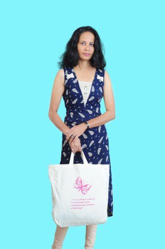 Carry bag - size: 14"x14" with 3" side block and 12" handle. Price: inr 70piece. Material: cotton cloth. Type: grey plain with printed design. we also are printing your own words on cotton bags at reasonable price. mfg. By: janees pillows and cushions, kaithamukku, thiruvananthapuram, kerala- 695
