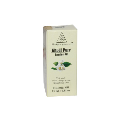 Khadi Pure Gramodyog™ Herbal Jasmine Essential Oil for external use only, can be used in burners and vaporizer, massage oil, bath oil, emmenagogue properties, non-irritant, non-toxic, non-sensitizing, must be avoided during pregnancy. Ingredients: Jasmine Essential Oil.Â
