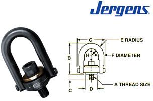 The Forged Center Pull Hoist Ring integrates a solid center brace lift bail into our most popular style product. This design eliminates the possibility of spreading the lift ring in misapplications. Forged hoist rings are ideal for OEM and industrial use. Full 360° Swivel and 180° Pivot Action Capacities up to 30,000 lbs. Inch and metric 5:1 strength factor-alloy steel Made in