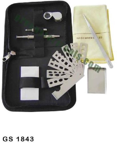 | GS 1843 | Jewellers Kit ( GS 1493C Tweezer , GS 770 10x Loupe, GS 1726 Grip, GS 1725 Diamond Grip, GS 1792 Shovel, GS 941 Fan Guage, GS 1731 Parcel Paper & GS 1297 Siliconised Cloth) in Genuine Leather Case |