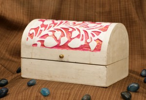 Description :Wooden Hand Crafted and Painted Decorative Pink Leaft Box, Home D‚cor Use :Exclusive designed Storage Organiser cum Jewellery box Base Material :Wooden with Bone Inlay Washing Advice :Clean with dry cloth Product weight WO Packaging :565 GMS Length :7 inch Width :5 inch Height :5 inch Theme :Wooden Hand Painted Colourful Decorative Box