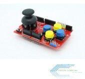 The shield sits on top of your Arduino and turns it into a simple controller. 7 momentary push buttons ( 4 big buttons + 2 small buttons + joystick select button ) and a two-axis thumb joystick gives your Arduino functionality on the level of old Nintendo controllers.