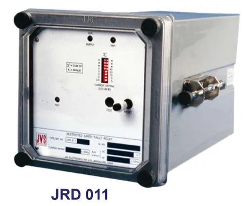 Contact SupplierThe Relays JRD 011 & JRD 013 are current operated Microprocessor based, differential relays which work on the high impedance principle. An external series stabilizing resistor is used with this relay to make it a voltage operated relay. The voltage setting of the relay is adjusted to be higher than that developed by the current transformers used for maximum external fault conditions. JRD 011 is a single pole relay where as JRD 013 is a triple pole relay.