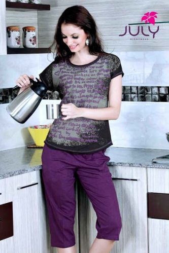 100% COTTON BLACK PRINTED TOP WITH PURPLE CAPRI