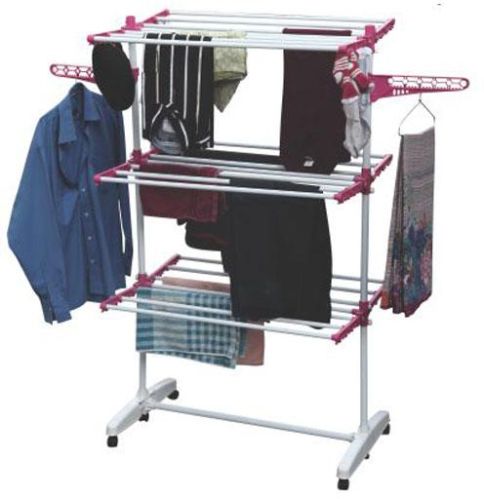 Strong & durable tubular construction with heavy frame design to stay with you for a very long time. Unique multi structure design for modern house. Multiple folding arms makes in versatile and easy to use. Additional arms for hangers. Essential for every house hold with multiple usage. Easy to move with 6 caster wheels even on full load. Castors also protects floor from scratches. 3 Layer rack for convenient and large drying space