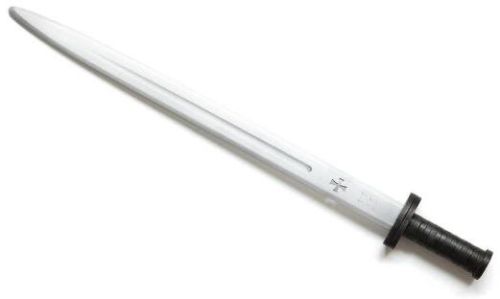 ALUMINUM BLADE WITH STACKED LEATHER HANDLE. EDGES AND TOPS OF SWORDS ARE DULL. JUNIOR KNIGHT SWORD BELT MADE FROM VEGETABLE-TANNED LEATHER WITH COPPER AND BRASS HARDWARE. APPROX: 24 L x 2.5 W