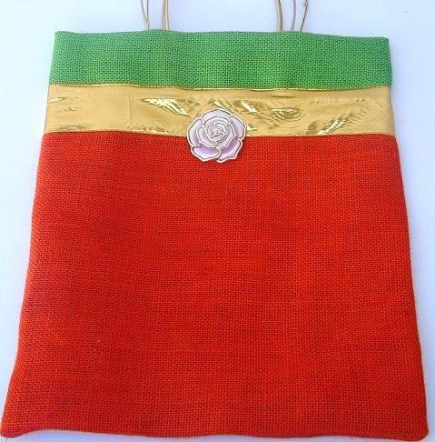 Product Description  This is an elegant jute bag made of only two colored jute fabric and a matching lace to embellish the bag. An extremely popular product due to the flexibilitiy and finish it offers on account of color of jute fabric, laces, choice of handles, decorative accessory etc.