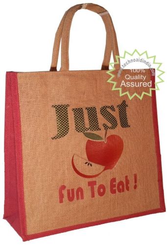 Natural color body and Red color side gusset size : 14 X 16 X 6 inch ( *any other size possible) Any print : your logo in 1 to 10 color Cotton shoft padded handle Perfect for shopping as lots of stuff can be kept easily this bag. Elegant in design Master carton / Master polybag. Production : 2000 bag per day Shipping By air/ Sea possible Hangtag : * at extra cost Individual poybag : At extra cost. Indicative price FOB Kolkata India USD 0.85 to USD 1.1 each