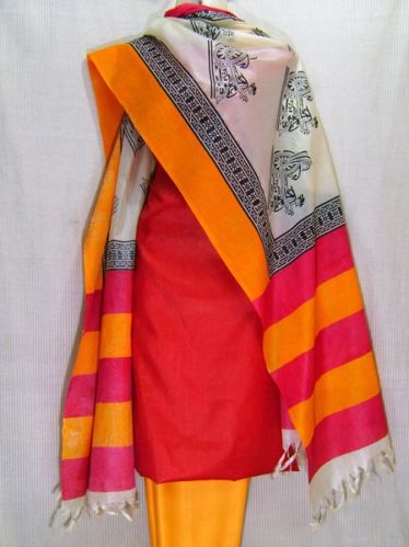 We are offering pure tussar silk and jute silk salwar kameez. We are manufacturer and leading supplier of laces, borders, designer fabrics, running fabrics and dress materials these are pure variety of tussar silk and jute silk salwar materials. Top: tussar jute dupatta: tussarjute bottom: silk 3pcs unstitched salwar materials min quantity: 15 pcs per order over 200 designs to choose from. Great quality product. All orders are made per order. Ship across india and international at the cheapest rates.