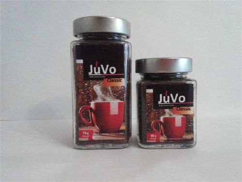 Juvo classic coffee instant 45g glass jar (granulated), 15 pcscartons coffee juvo classic (similar in taste - nescafe classic) the minimum order is 3 pallet supply ability per month is 25 x 40 ft containers 45g glass jar - 12 pcs. In package palette: 336 packages 70g glass jar - 12 pcs. In package palette: 168 packages full truck: 66 pallets container '20ft: 22 pallets