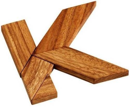 The k puzzle is one of our great wooden letter puzzles collection and you can find also the letters t, h and f puzzles. the letter puzzles are fun and they looks like they are easy to solve so they attracts everyone to try. But hey, we didn't say it's easy! if you want to try you can start with the f which is the easiest, continue with the t and finish with the h and k that are the hardest to solve. The objective here is to form a capital letter 'k' from all the 5 pieces.