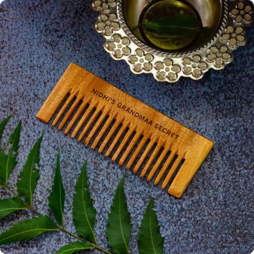 Nidhi's Grandmaa Secret presents the Kacchi Neem Comb, a handcrafted, eco-friendly wooden comb made with the natural properties of neem Wood. This traditional comb is designed to promote scalp health, reduce hair fall, and enhance overall hair care.