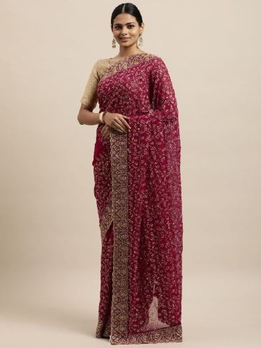 1452 Georgette Cherry Embroidered Saree, Occasion : Festival Wear, Party Wear, Wedding Wear