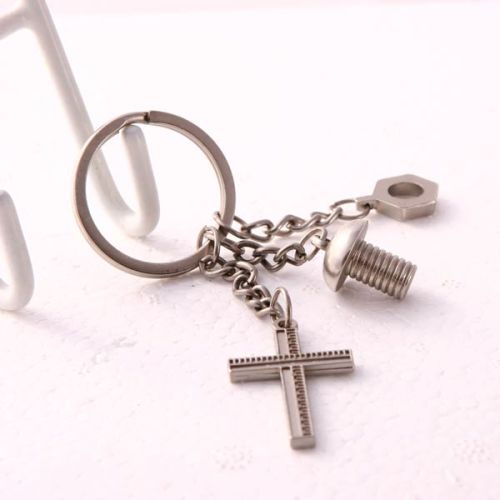 Stand out in the crowd by hanging this keychain on your bag. The key chain comprises a cross charm, a screw charm and a screw nut charm to create a remarkable impression. With this fascinating keychain, you will capture everyone’s attention whenever you go. •material: zinc alloy. •silver-tone charms with cross, screw and metal nut designs. •split ring attachment. •durable and finely crafted. •can be used as key holder or zipper pull. •perfect for personal use or gift giving. •oem is welcome. •small quantity order is accepted.