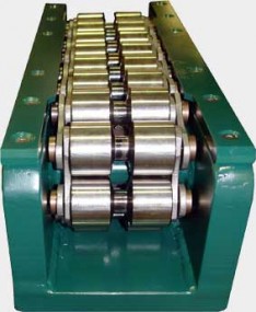 Keyway Rollers are a unique way of providing a guidance system to a Hilman Rollers. Whereas an Accu-Roll Guidance System is external of the standard size roller frame, a Keyway Roller has what we call an internal Guidance System. The keyway style chain is designed to remain centered to the frame (straight or radius). This type of chain should be used on high cycle life applications or applications where the roller may be used in a vertical manner. Keyway Chains have a groove machined into the rolls that mates with a track that is machined into the roller frame’s load plate