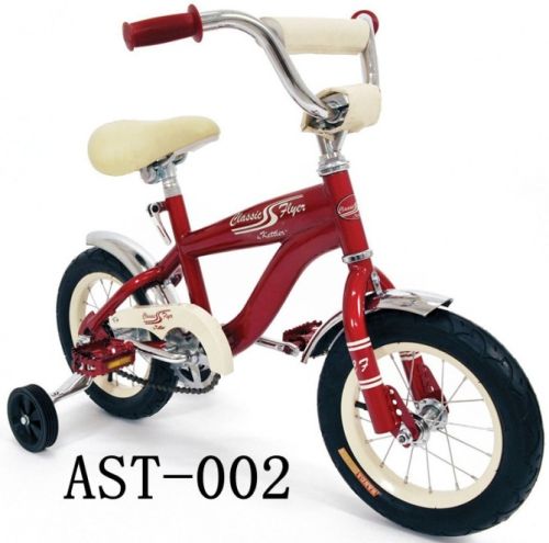 learning to first ride a bike has never been more exciting and simple with 12" classic flyer retro bike. The 12" classic flyer retro bike has vivid retro colors and all the neat features that they are fully equipped with safety features. Removable and adjustable training wheels, padded handlebars & stem, rear coaster brakes, tough frames and an enclosed chain are only the beginning to getting the kids off to a safe start in their bicycling development. Air tires, a full set of reflectors and sporty chrome plated fenders make this bike a very cool ride. For a custom fit that ensures proper posture, the padded seat and handlebars are adjustable. Nobody's tougher on bikes than beginners, but the 12" classic flyer retro bike is dependable, built to last and easy to learn to ride.