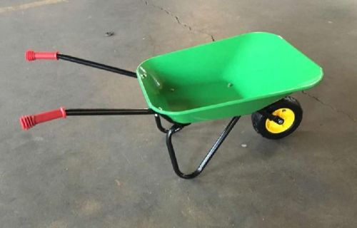 Contact SupplierWith this Kids' Wheelbarrow your child can work right along side as you wheelbarrow, This Kids' Wheelbarrow is functional and fun, this little earth mover features a wide 32 inch wheel base and rubber wheels for easy balancing. This classic Gardening Kids's Wheelbarrow is great for kids who want to garden, it moves 1 heaping cubic foot of dirt. This Kids' Wheelbarrow is made using safe and high quality materials, this product is designed to lase, recommended for ages 3 and up. Specification: Kids Wheelbarrow                           Powder coated steel tray and steel tube fram                          boby size: LHC)(mm)790x365x370 ABh(mm):475x370x110                           Wheel size: 6.5"*2.4"                               Load weigth 5kg, own weight 2.3kg