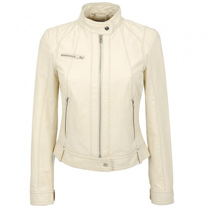We are offering kinner leather jacket. Kinner leather jacket,graceful design and waist slim shape, front at yoke zip,two side hand zipper pockets,button at cuffs collar and bottom belt, nice look collar,belt at bottom loops,two pockets inside,high quality sheep leather.