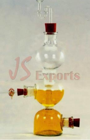 Kipp'S Apparatus that we supply in the market are effectively used for producing a gas by the action of a liquid on a solid without heating. Our Glass Kipp'S Apparatus has three main portions. Dilute acid can be poured through the top potion. The gas evolved after reaction is collected in the middle dome and the base portion is provided with a residual outer fitted with a cap for easy cleaning. Further, we are acknowledged as one of the reliable Laboratory Kipp̢۪S Apparatus Exporters in India. Capacity (ml):- a(250), b(500), c(1000)