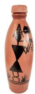 Clay Krishana Painting Water Bottle, Color : Reddish Brown