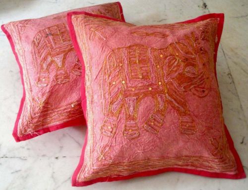We are offering 2 indian handcrafted sequin embroidered traditional elephant throw pillow cases toss cushion covers.a pair of indian handcrafted sequin embroidered traditional elephant throw pillow cases toss cushion covers. If you are fashion savvy, want to be unique, different and set a trend, these are definitely for you. Spruce up your room with this spectacular masterpiece of work.