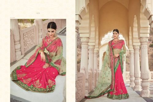 Contact SupplierPink & green designer georgette with net saree with embroidery work, zari work as well as lace work alongwith beautiful net pallu.Combined with matching blouse with work. We make outfits upto size 36 to 42 & can be customized. As well as standard stitching is possible. Blouse can be customized with any changes if you want for unstitched products(Slight variation in color & patch border is possible).