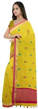 Ksr Handlooms Yellow Muga Work Cotton Saree?