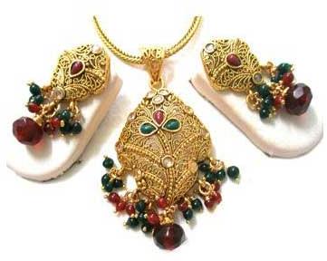We are offering kundan pendant set - (model no. - kj - 7) etc. The kundan pendant set that we offer to the clients is highly attractive and adds charm to the wearer. Our kundan pendant set can be worn at different occasions as it suits with all kinds of outfits. price : 22 usd