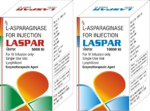 Category: Antineoplastic Composition:- Each vial contains L-Asparaginase 5000IU/10000 IU The rationale behind asparaginase is that it takes advantage of the fact that ALL leukemic cells are unable to synthesize the non-essential amino acid asparagine, whereas normal cells are able to make their own asparagine; thus leukemic cells require high amount of asparagine. These leukemic cells depend on circulating asparagine. Asparaginase, however, catalyzes the conversion of L-asparagine to aspartic acid and ammonia. This deprives the leukemic cell of circulating asparagine.
