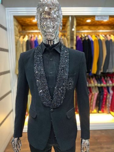 Black Sequin Tuxedo Suit, Size : M, XL, XXL