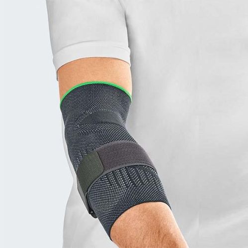Elastic elbow support with anatomically shaped pads 1. a supreme solution for pain and swelling due to tennis 2. and golfers elbow 3. compression therapy with massaging effect 4. foam pad at medial and lateral side 5. skin friendly fabric 6. measurement: circumference 5 cm below centre of elbow joint.