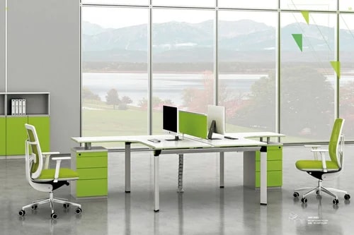 Multi Color Polished Glass L Shape Office Workstation