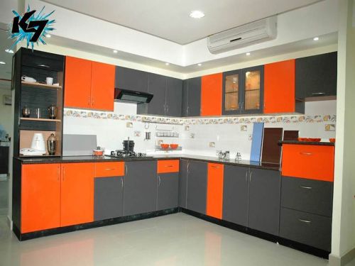 We are offering our clients 'L' Shaped Kitchen, which comes with two adjacent walls, spreading out the work place. Our professionals design these in a manner so as to give a wider cooking area. With the help of our products, the space can be utilized maximally, In this kitchen, there is enough space for accessories such as fridge, sink and utensils. This kitchen has a leg of the L doubles that is used as a room divider. Features Durability Longer service life Moisture resistance Temperature resistance Less space consuming Easy to install