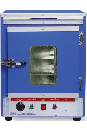 Steel/Aluminium/Wire mesh tray. Temp is recorded means of “L” shaped Prismatic glass Thermometer fitted at the front of the cabinet Temperature controlled by Hydraulic type Bi-Metallic Capillary Thermostat, having adjustable air ventilators on both sides.