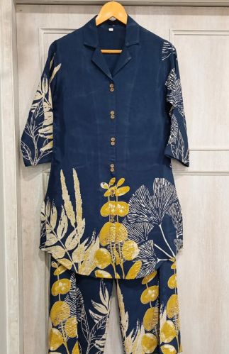Ladies Blue Floral Rayon Printed Cord Set?