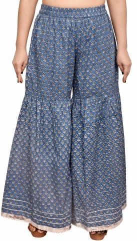 Cotton Printed Ladies Blue Palazzo Pant Large
