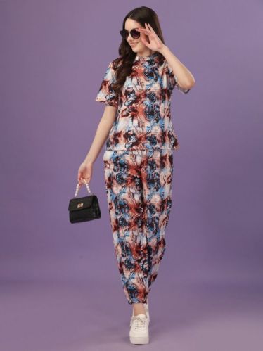 Ladies Brown Cotton Lycra Digital Printed Co-Ord Set?