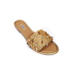 Leather Ladies Brown Flat Slippers, For Casual Wear, Party Wear, Size : Standard